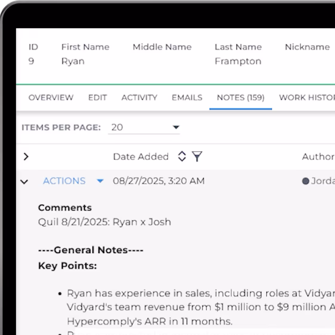 Since Quil, my candidate interactions feel more human & notes take care of themselves.