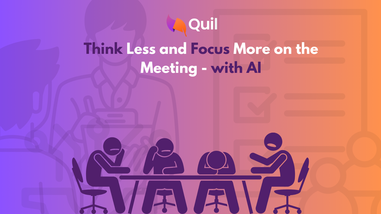 But Quil just swoops in smoothly, makes sure that time is optimized, writes the notes for you, pulls out the actionable items, and frees you to focus on thinking instead of scribbling.